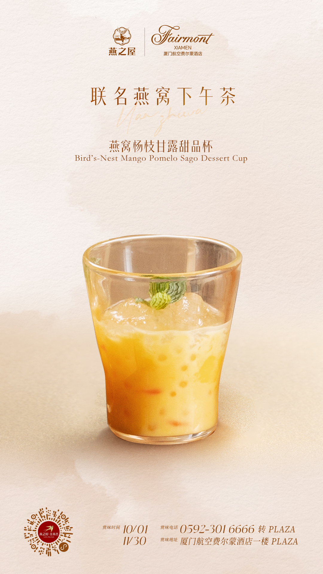 微風(fēng)蕩漾,吹來(lái)桂花香,正是愜意初秋時(shí)節(jié)。燕之屋與廈門航空費(fèi)爾蒙酒店P(guān)LAZA大堂酒廊聯(lián)袂呈現(xiàn)燕窩下午茶,以燕窩為媒,在方寸餐桌間展開一場(chǎng)關(guān)于時(shí)光、技藝與美學(xué)的深度對(duì)話,于雅致高端之所,開啟午后味蕾奇遇。