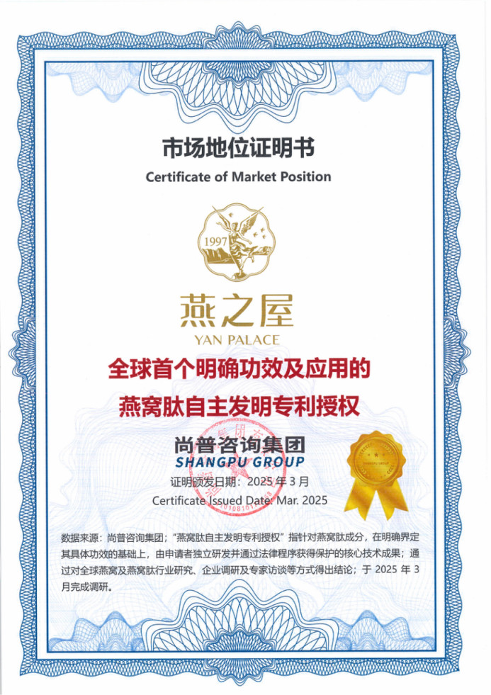 ③燕之屋首個(gè)燕窩肽自主研發(fā)工藝及應(yīng)用發(fā)明專利:一種具有促進(jìn)細(xì)胞修護(hù)、高保濕美白功效的燕窩肽制備方法及應(yīng)用,專利號(hào):ZL 2022 11398048.3