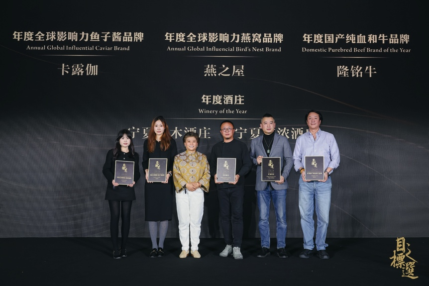 本屆盛典以“時韻恒新”為主題,聚焦于行業(yè)如何在時間縱深中平衡“延續(xù)”與“變化”,旨在發(fā)掘那些歷經(jīng)淬煉的價值在當(dāng)下的新詮釋,以及尊重傳統(tǒng)根基的新表達。隨著典禮正式啟幕,目標(biāo)之選創(chuàng)辦人、主理人、《目標(biāo) TARGET》出品人索斌先生首先登臺,與中華非物質(zhì)文化傳承人、八項國際金獎得主、亞洲大廚、世界中餐名廚委員會主席、北京屈浩烹飪學(xué)校校長屈浩先生;凱悅大中華區(qū)區(qū)域副總裁、杭州柏悅酒店總經(jīng)理周宏斌先生;燕之屋公關(guān)總監(jiān)楊航女士等頒獎嘉賓共同祝酒,開啟今年的頒獎典禮。